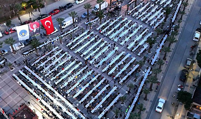 Toplu iftar geleneğini sürdüren Turgutlu Belediyesi, Turgutlulular için 3 bin 500 kişilik iftar sofrası kurdu. Vatandaşlar, Ramazan ayının ilk iftarını açmak için geleneksel iftar sofrasına yoğun ilgi gösterirken Turgutlu Belediye Başkanı Çetin Akın da ilk iftarı hemşehrileri ile birlikte açtı. Başkan Çetin Akın, "Rabbim birliğimizi, dirliğimizi, kardeşliğimizi daim kılsın" dedi.Turgutlu Belediyesinin on bir ayın sultanı ramazan ayında kurduğu iftar sofrası geleneği bu yıl da devam etti. Ramazan'ın ilk gününde 15 Temmuz Demokrasi Şehitleri Alanı'nda 3 bin 500 kişilik iftar sofrası kuruldu. Her yıl ramazan ayında vatandaşlarla birlikte olan Turgutlu Belediye Başkanı Çetin Akın, binlerce vatandaş ile aynı sofrayı paylaştı. İftarda vatandaşlar bir yandan oruçlarını açarken bir yandan da birlik ve beraberlik ruhunu yaşadı.Turgutlu Belediye Başkanı Çetin Akın, "Rabbim birliğimizi, dirliğimizi, kardeşliğimizi daim kılsın. On bir ayın Sultanı mübarek Ramazan ayı dolayısıyla düzenlediğimiz toplu iftar soframızda ilk orucumuzu hemşehrilerimizle birlikte açtık. Her zaman ki gibi bu mübarek günü hep birlikte paylaştık. Rabbim oruçlarımızı kabul, sofralarımızı bereketli eylesin. Hayırlı Ramazanlar" dedi.