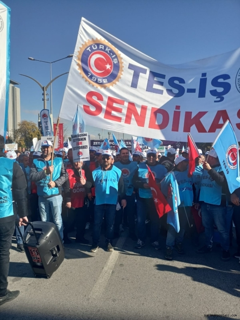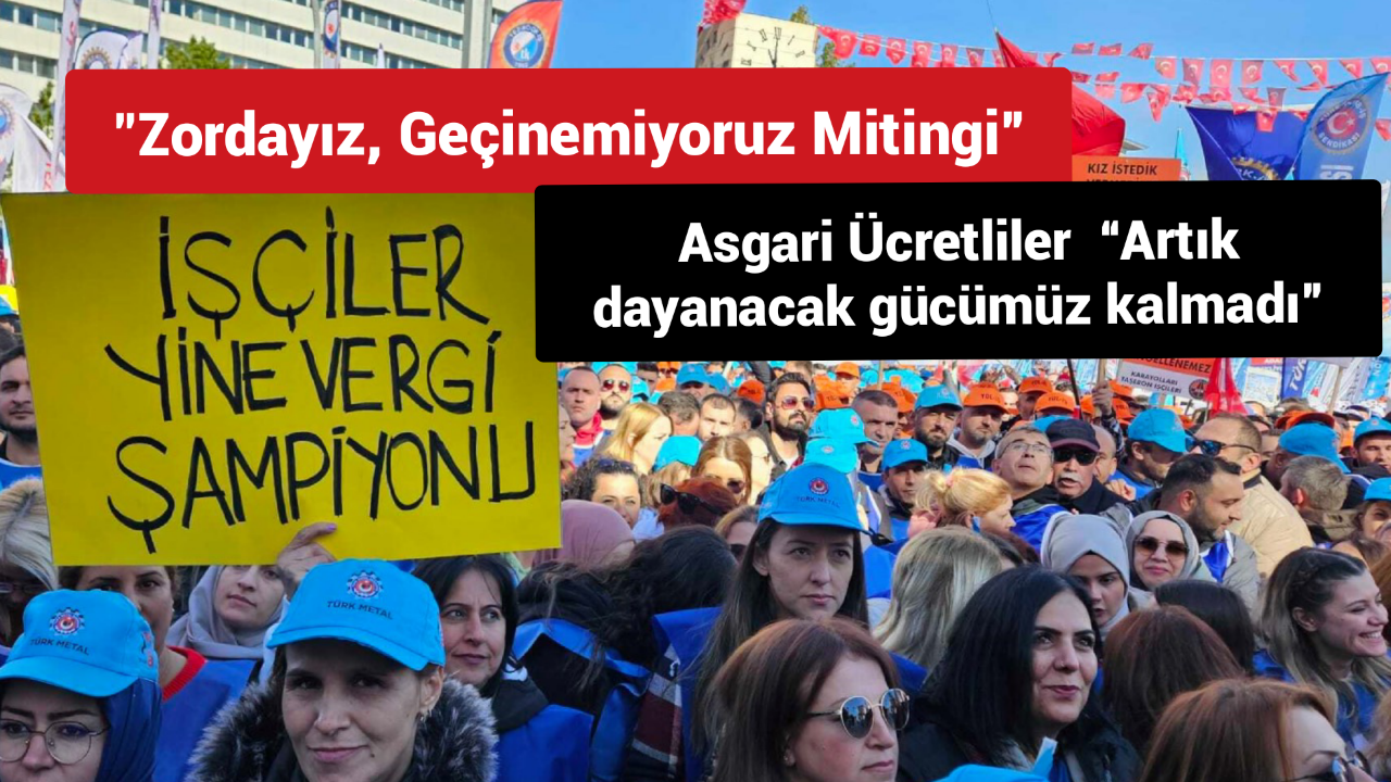 Türk-İş Genel Başkanı Ergun Atalay, “Zordayız, geçinemiyoruz” mitinginde yaptığı konuşmada, “Bu alandan hükümete, ülkeyi yönetenlere tekrar sesleniyorum. Bizi yok saymayın. Biz bu ülkenin yüzde 60’ıyız. Biz sizin oy makineniz değiliz. Ayağınızı denk alın. Biz her defasında sandığa gidip size oy vermek zorunda değiliz” dedi.Türkiye İşçi Sendikası Konfederasyonu (Türk-İş) tarafından düzenlenen “Zordayız, geçinemiyoruz” mitingi Ankara Anadolu (Tandoğan) Meydanı’nda yapıldı. Mitinge, Türkiye’nin dört bir yanından işçiler katıldı. Mitinge, katılan yaklaşık 100 bini aşkın işçi, yaşadıkları ekonomik sorunlara çözüm ve vergide adalet talepleri için seslerini duyurmaya çalıştı. Eyleme, CHP Niğde Milletvekili Ömer Fethi Gürer, CHP Ankara Milletvekili Gamze Taşçıer, EMEK Partisi İstanbul Milletvekili İskender Bayhan ile Gaziantep Milletvekili Sevda Karaca, EMEK Partisi Genel Başkanı Seyit Arslan, Demokrat Parti İstanbul Milletvekili Cemal Enginyurt da destek verdi.Eylemde sırasıyla farklı alanlardan söz alan işçiler konuştu. Konuşmalar sırasında işçiler, “Şimşek şaşırma, sabrımızı taşırma”, “Sadaka değil toplu sözleşme”, “Bu daha başlangıç mücadeleye devam”, “Uzlaşma yoksa direniş var”, “Ankara, Ankara duy sesimizi bu gelen işçinin ayak sesleri”, “Yılgınlık yok tek başına, ya hep beraber ya hiçbirimiz”, “Gemileri yaktık geri dönüş yok”, “Yaşasın sınıf dayanışması”, “İş ekmek yoksa barış da yok” sloganlarını attı.