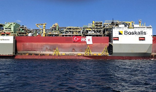 Türkiye'nin ilk yüzer üretim, depolama ve tahliye platformu (FPSO) Çanakkale Boğazı'na ulaştı.Türkiye'nin ilk yüzer doğal gaz üretim platformu, sabah saat 08.30 sıralarında Ege Denizi'nden Çanakkale Boğazı'na giriş yaptı. Kıyı Emniyet Müdürlüğü'ne ait 2 römorkörün eşlik ettiği gemi Kilitbahir Kalesi ile Kilitbahir köyü dağı'ndaki 'Dur Yolcu' yazısının önünden geçti.Enerji ve Tabii Kaynaklar Bakanı Alparslan Bayraktar, sosyal medya hesabından yaptığı açıklamada, "Yüzer Üretim Platformumuz Çanakkale'ye ulaştı. 2026 yılında Sakarya Gaz Sahası'nda devreye girerek günlük 10 milyon metreküp doğal gaz işleyecek. Tek başına 4 milyon hanenin gaz ihtiyacını karşılayacak" ifadelerine yer verdi.