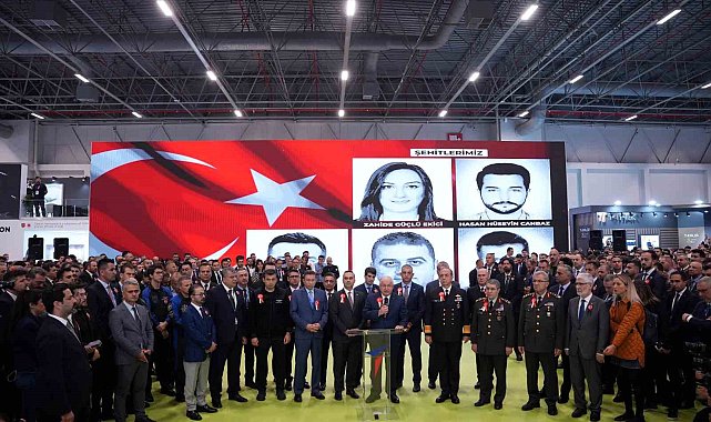 Türk Havacılık ve Uzay Sanayii Anonim Şirketi'nin (TUSAŞ) SAHA EXPO'da bulunan standına dev led ekran kurularak şehitlerin fotoğrafları yansıtıldı. Ayrıca fuar alanı da Türk bayrakları ile donatıldı.Türk Havacılık ve Uzay Sanayii Anonim Şirketi'nin (TUSAŞ) dün Ankara'nın Kahramankazan ilçesindeki tesislerine yönelik terör saldırısı gerçekleştirilmişti. Saldırıda TUSAŞ'da kalite kontrol görevlisi olarak görev yapan Cengiz Çoşkun, Makine Mühendisi Zahide Güçlü, TUSAŞ çalışanı Hasan Hüseyin Canbaz, Güvenlik görevlisi Atakan Şahin Erdoğan ile taksi şoförü Murat Aslan şehit olmuştu. Bugün Uluslararası Savunma, Havacılık ve Uzay Sanayi Fuarı SAHA EXPO'da TUSAŞ standına dev platform kurularak şehitlerin fotoğrafları yansıtıldı. Ayrıca fuar alanında bulunan led akranlara da Türk bayrakları konuldu.