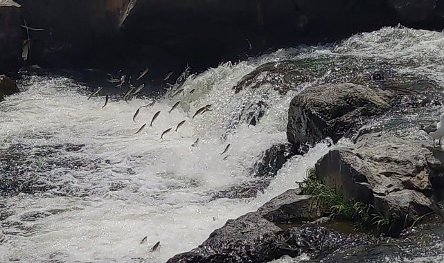 Dünyada sadece Van Gölü'nde yaşayan ve yılın belli döneminde üreme için suyun akışının tersine yüzerek tatlı sulara göç eden inci kefalinin zorlu yolculuğu, vatandaşlara görsel şölen sunmaya devam ediyor.Neslinin korunması için 15 Nisan-15 Temmuz tarihleri arasında avlanması yasaklanan inci kefali, Van Gölü'nün tuzlu ve sodalı suyundan çıkarak, 12 ayrı noktadan göle dökülen akarsulara yumurtalarını bırakmak için yaklaşık 1.5 ay önce başlattığı göçünü sürdürüyor.Önüne çıkan engelleri adeta uçarcasına aşan inci kefali, izleyenlere görsel şölen, dere kenarlarına akın eden martılara ise ziyafet sunuyor."Milyonlarca balık, göle dökülen akarsulara yumurtalarını bırakıyor"Balıklar bu yolculuklarını da akarsuyun tersine yüzerek yapıyor. Van Gölü'nün tuzlu ve sodalı suyundan çıkarak yumurtalarını bırakmak için akarsulara akın eden balıklar, aynı zamanda martılara da ziyafet oluyor. Van Gölü'nde yaşayan inci kefali balığı, 15 Nisan ile 15 Temmuz tarihleri arasında üreme dönemi olduğu için Van Gölü'nün sodalı ve tuzlu suyundan uzaklaşarak tatlı sulara doğru göç ediyor. Her yıl aynı tarihlerde milyonlarca balığın bu zorlu göçünün yoğun olarak görüldüğü Erciş ilçesindeki Deli Çay'da, suyun akış yönünün tersine yüzen ve engelleri uçarak aşmaya çalışan balıklarla martıların görsel şovu izleyenleri büyülüyor.Jandarmanın atlı birliği de Erciş ilçesindeki Deli Çay'da görev alması vatandaşlardan yoğun ilgi gördü.