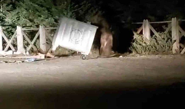 Uludağ'da aç kalan ayı çöp konteynerinde yemek ararken görüntülendi. Yerleşim bölgesine inen ayı konteyneri devirdi.Uludağ'a gezmeye giden vatandaşlar, çöp konteynerinde yemek arayan bir ayı olduğunu fark etti. Bir süre boyunca araç farlarının yardımıyla yemek arayan ayı, konteyneri devirdi. Sevimli ayı daha sonra geldiği ormanlık alana giderek gözden kayboldu.