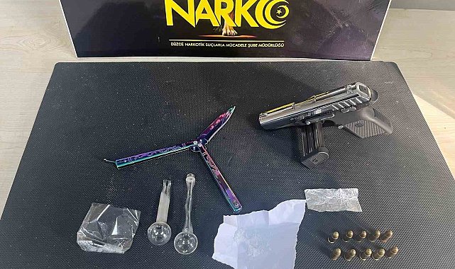 Düzce'de polis ekiplerinin uyuşturucu ile mücadele çerçevesinde sokak satıcılarına yönelik yapılan baskınlarda 2 kişi gözaltına alındı.Düzce Cumhuriyet Başsavcılığı koordinesinde Narkotik Suçlarla Mücadele Şube Müdürlüğü ekipleri Çay Mahallesinde operasyon gerçekleştirdi. Bu çerçevede Uyuşturucu Madde Ticareti Yapmak Suçundan O.O.Ö. ve İ. G. isimli şahısların üzerinde ve ikametlerinde yapılan aramada, 6 gram metamfetamin, 1 adet ruhsatsız tabanca, uyuşturucu madde kullanımı ve satımına yönelik aparatlar ve 1 adet kelebek tabir edilen bıçak ele geçirildi. Uyuşturucu madde ticareti Yapmak suçundan işlem gören O. Ö. isimli şahıs adli kontrol şartıyla serbest bırakılırken, İ. G. isimli şahıs ise Düzce Sulh Ceza Hakimliği tarafından tutuklandı. Ayrıca Şüphelilerden uyuşturucu madde satın aldığı tespit edilen 2 kişi hakkında ise uyuşturucu madde kullanmak suçundan adli işlem yapıldı.