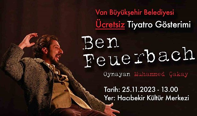 Van Büyükşehir Belediyesi tarafından başlatılan ücretsiz tiyatro gösterileri, 'Ben Feuerbach' isimli tiyatro oyunu ile devam edecek.Van Büyükşehir Belediyesinin kentin kültür-sanat hayatına katkıda bulunmak için başlatmış olduğu ücretsiz tiyatro günleri devam ediyor. Kültür ve Sosyal İşler Dairesi Başkanlığı, 25 Kasım Cumartesi günü saat 13.00'da ise Hacıbekir Kültür Merkezinde 'Ben Feuerbach' adlı oyunu Vanlılarla buluşturacak.Ücretsiz olarak sahnelenecek olan tiyatro oyununa herkesin davetli olduğu belirtildi.