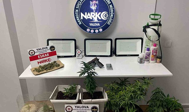 Yalova'da polis tarafından düzenlenen uyuşturucu operasyonlarında 2 şüpheli gözaltına alınırken, 40 gram esrar, 19 gram metamfetamin ve saksıda 10 kök Hint keneviri ele geçirildi.Alınan bilgiye göre, İl Emniyet Müdürlüğü Narkotik Suçlarla Mücadele Şube Müdürlüğü Narkotim ekipleri, sokak düzeyinde uyuşturucu madde ticareti yaptığı ya da yaptırdığı değerlendirilen M.A.A.'yı gözaltına aldı. Şüpheli şahsın açık kimlik ve adres tespiti üzerine narkotik maddeler arama köpeği 'Zeytin' eşliğinde gerçekleştirilen ikamet aramasında, 40 gram esrar, 10 kök ekili vaziyette Hint keneviri bitkisi, hassas terazi ve ruhsatsız tabancanın yanı sıra uyuşturucu bitki üretiminde kullanılan çeşitli malzemeler ele geçirildi.Polisin diğer bir çalışmasında ise yine sokak düzeyinde uyuşturucu madde ticareti yaptığı değerlendirilen B.G. yakalanarak gözaltına alındı. B.G. üzerinde gerçekleştirilen aramada, 19 gram metamfetamin ele geçirildi.2 şüphelinin emniyetteki işlemleri devam ediyor.