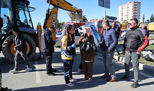 Adana'da 2 otomobilin çarpıştığı kazada yan yatan otomobilde sıkışan yaşlı kadın yaralandı. Yaralı kadın, CANKUR ekipleri tarafından araçtan çıkartılıp ambulansla hastaneye kaldırıldı.Kaza, öğle saatlerinde merkez Yüreğir ilçesine bağlı Yavuzlar Mahallesi Mustafa Kemal Paşa Bulvarı İl Sağlık Müdürlüğü kavşağı önünde meydana geldi. Mesut Kalkan idaresindeki 01 AOH 368 plakalı Volkswagen marka otomobil, Hatice Doğan (35) idaresinde 07 BKE 359 plakalı otomobile kavşakta çarpıştı. Çarpmanın etkisiyle genç kadının kullandığı otomobil yan yattı.Annesi sıkıştıÇevredekilerin ihbarı üzerine kaza yerine CANKUR ve sağlık ekipleri sevk edildi. CANKUR ekipleri otomobilde sıkışan Hatice Doğan'ın annesi Meliha Doğan'ı (60) kurtarıp sağlık ekiplerine teslim etti. Yaralı kadın ambulansla hastaneye kaldırıldı.Kazanın şokunu atlatamadıKazanın şokunu atlatamayıp sürekli annesinin durumunu soran Hatice Doğan'ı ise polis ve sağlık ekipleri sakinleştirdi. Polis ekipleri kazayla ilgili inceleme başlatırken araçlarda maddi hasar meydana geldi.İş makinesi yan yatan aracı düzelttiKaza nedeniyle uzun araç kuyruğu olurken bölgede kazı yapan bir iş makinesi, yan yatan otomobili halat bağlayıp düzeltti. Araçlar incelemenin ardından çekici ile bölgeden kaldırılırken trafik normale döndü. Yaşlı kadının tedavisinin devam ettiği öğrenildi.