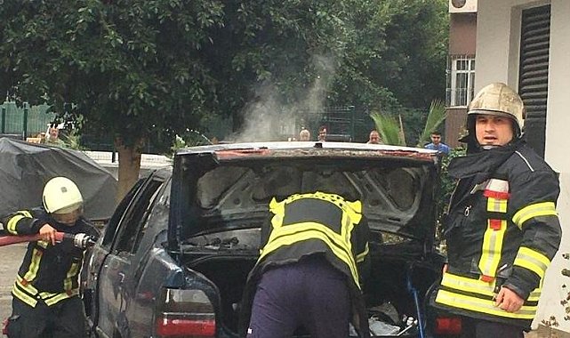 Edinilen bilgiye göre, merkez Mezitli ilçesi Menderes Mahallesi'nde N.E.'ye ait 33 A 4155 plakalı otomobil, sokakta park halinde iken aniden yanmaya başladı. Otomobil kısa sürede alevlere teslim olurken, binanın 3. katındaki bir vatandaş evinin balkonundan yanan aracın üzerine kovayla su dökerek söndürmeye çalıştı.