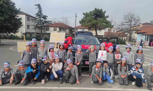 12-18 Aralık Yerli Malı Haftası çerçevesinde Sakarya'nın Geyve ilçesinde öğrenciler, Türkiye'nin gururu yerli otomobil TOGG'la buluştu.Geyve Kazımpaşa İlkokulu'nda düzenlenen Yerli Malı Haftası etkinliği yerli ürünlerin yanı sıra yerli ve milli araç TOGG ile kutlandı. Öğrenciler, yerli aracın okula gelmesiyle büyük bir heyecan yaşarken mutlulukları adeta gözlerinden okundu. Türk Bayrağı ve balonlarla süslenen TOGG ile buluşan öğrenciler, fotoğraf çektirmeyi de ihmal etmedi.