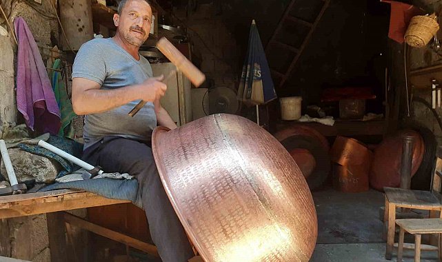 Kahramanmaraşlı bakırcı ustası yıllardır lokum kazanlarını ilmek ilmek elleriyle işliyor. Kahramanmaraş'ta yapılan lokum kazanları hem şehir dışına hem de yurtdışına ihraç ediliyor.Kahramanmaraş'ın Dulkadiroğlu ilçesinde bulunan tarihi kapalıçarşıda esnaflık yapan Orhan Kavasoğlu, lokum kazanlarını yıllardır elleriyle ilmek ilmek işliyor. Makinelerin bu kadar incelikli işçilik ve detaylara sahip ürünleri üretemeyeceğini, geleneksel yöntemlerle üretilen kazanların daha iyi bir kaliteye sahip olduğunu kaydetti."Bakırda kıvamında, güzel piştiği için tercih ediliyor"1982 yılında çıraklık dönemine adım atan ve o günden bugüne emek vererek bakırcı ustası olan Kavasoğlu, 43 yıldır bu sanatı yaptığını da ifade ederek, "Bakırcılık sanatını yürütmeye çalışıyoruz. Bakırcılık sanatı Kahramanmaraş'a has özellikli bir meslek. Kahramanmaraş da eskiden bundan 200-300 yıl öncesine kadar, semercilik, kalaycılık, kuyumculuk, bakırcılık ve keçecilik önde gelen bir meslekti. Bizde 1982 yıllarında çıraklık dönemi geçirdik. Okumadık, tercihimiz sanat oldu, meslek oldu. O günden bugüne çıraklık, kalfalık derken bakırcı ustası olduk. 12 yaşında buraya geldim. 43 yıl oldu. Kahramanmaraş'ta bağcılık dediğimiz pekmez, tarhana, bulgur bunların kazanları bakır olur. Bakırı tercih etmelerindeki sebep de şu; iletken oluşu ve güzel kıvamında pişirilecek konumda olduğu için bakır tercih ediliyor. Bizde o nedenle eskiden atalarımızın yapmış olduğu mahsere kazanları var. Çamaşır kazanları, pekmez leğenleri, tencere gibi bunları üretiyoruz. Lokum, şeker, helva, Kahramanmaraş'ın dondurma kazanları, sucuk kazanları, Kahramanmaraş'a has cevizli sucuk pekmez kazanları, irmik helva kazanları, yemek kazanları üretiyoruz" dedi."Teknoloji geliştikçe çelik çıktı"Kahramanmaraş'ın bakır kazanlarının ününün Türkiye çapına ve yurtdışına kadar genişlediğini belirten Kavasoğlu, "Bu iş genişledi, Türkiye çapına yayıldı. Kahramanmaraş'ta bu işi yapan üç beş kişi kaldık. Biz ayakta tutmaya çalışıyoruz. Sipariş üzeri çalışıyoruz. Her bölgenin kendine has bir modeli var, o modele göre Malatya, Gaziantep, Adıyaman, Elazığ, Siirt, Diyarbakır modelleri farklı. Adana, Mersin, Konya, Kastamonu, Safranbolu, İstanbul, Trakya bölgesine kadar yurtdışına kadar giden modeller var. Askeriyenin kullanmış olduğu karavana dediğimiz şey bakırdandı eskiden. Cezaevi kazanları. Bunların hepsi bakırdandı. Teknoloji geliştikçe çelik çıktı. Şimdi yoğun talep olduğundan çeliğe yöneldiler. Bir de kalay sorunu olduğu için bazı sektörlerde her altı aya bir veya her yıl kalaylatması lazım. Bundan kaçmak için çeliğe yöneldiler. Ondan da randıman alınmıyor. Şu anda dönüşüm var bakıra yeniden. Herkes bakırı kullanmak istiyor. Çünkü bakırın vermiş olduğu özelliği kıvamı hiçbir maden vermez" diye konuştu.