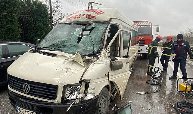 Kocaeli D100 Karayolu'nda aniden duran araca çarpmamak için frene basan kamyon, bariyerlere çarptı. Arkadan gelen yolcu minibüsü ise kamyona çarptı. Kazada 2 araç sürücüsü yaralanırken, şans eseri yolcular yara almadan kurtuldu.Kaza, Kartepe ilçesi D100 Karayolu Ankara istikametinde Cengiz Topel Havaalanı mevkiinde meydana geldi. Edinilen bilgiye göre, önünde seyir halinde bulunan aracın aniden durmasıyla frene basan M.G. idaresindeki 41 LD 643 plakalı Mercedes marka kamyon, yerin ıslak olması sebebiyle kayarak bariyerlere çarptı. O esnada seyir halinde olan B.K. idaresindeki 54 E 0565 plakalı Volkswagen marka yolcu minibüsü de duramayarak 41 LD 643 plakalı kamyona çarptı. Çarpmanın etkisiyle minibüs şoförü araçta sıkıştı. İhbar üzerine olay yerine sağlık, itfaiye ve polis ekipleri sevk edildi. Kısa sürede olay yerine gelen itfaiye ekipleri sıkışan B.K.'yi araçtan çıkararak sağlık ekiplerin teslim etti. Yaralanan sürücüler B.K. ile M.G. ilk müdahalelerinin ardından ambulansla hastaneye kaldırıldı. Kaza sebebiyle minibüs kullanılamaz hale gelirken, yolcuların da yara almaması rahat nefes aldırdı. Kaza yapan araçların yoldan kaldırılmasıyla kapanan yol tekrardan açıldı. Polis olayla ilgili inceleme başlattı.Minibüste yolcu olarak bulunan Bülent Kaplan, "Uyumaya çalışıyordum. Birden bire araca çarptık. Tüm yolcular ön tarafa yığıldı" dedi.